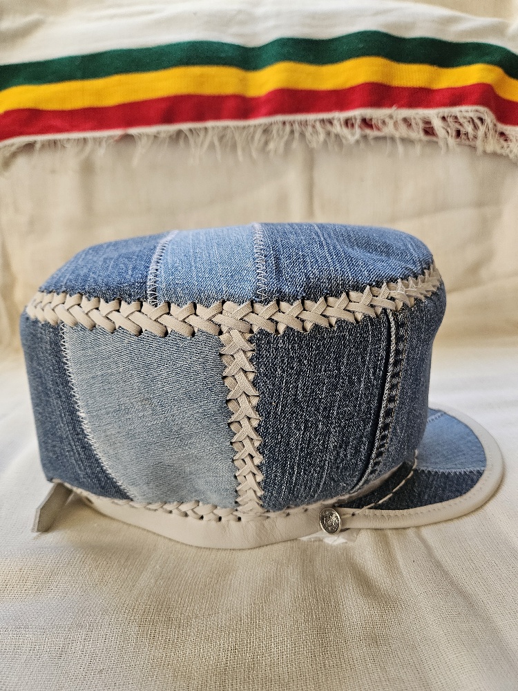 Rasta Leather Crown, Denim, adjustable crown 25"-28" head size item 20254 $280.00