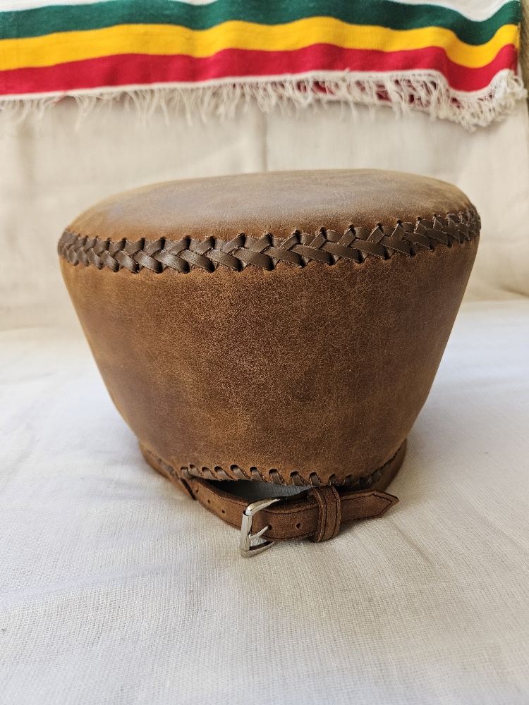 Rasta Leather Crown,Brown, adjustable strap fits 25"-28", height 5" item 20256 $280.00