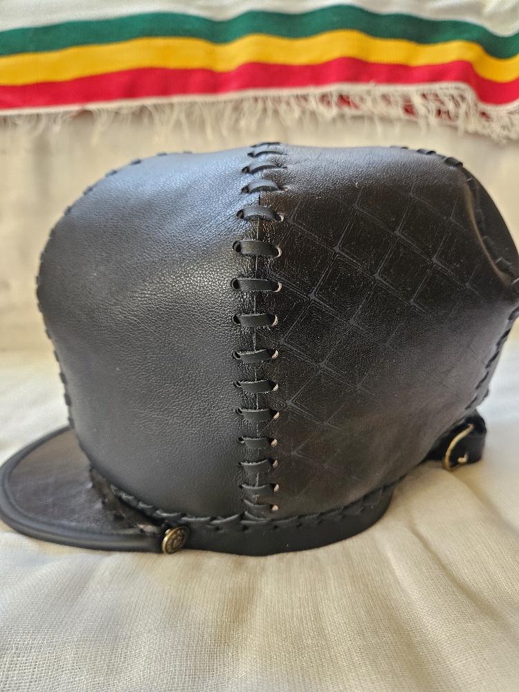 Rasta Leather Crown, Denim, adjustable crown 25"-28" head size item 20254 $280.00
